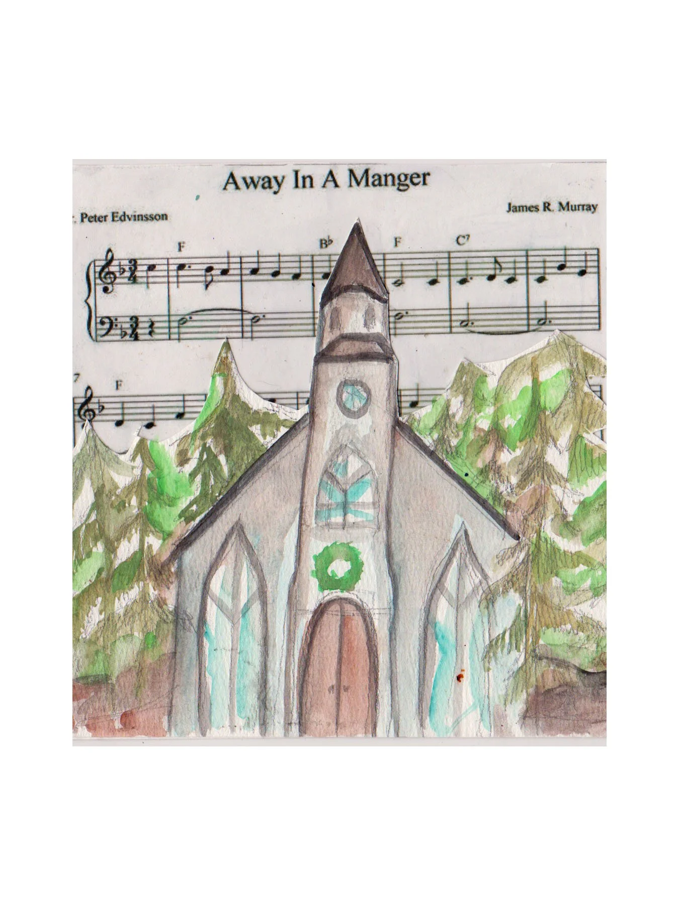 A beautiful painting using vintage Christmas sheet music, watercolor and acrylic. Size 9x12 inches. All materials included.